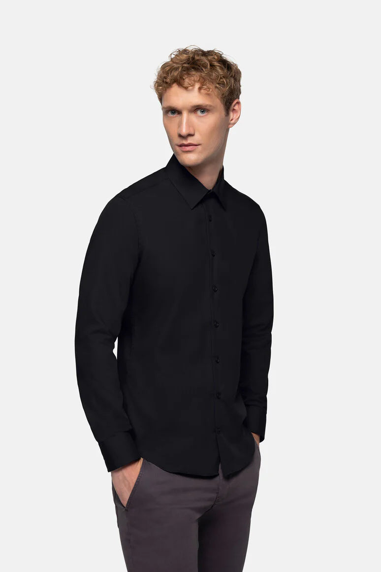 Durch die hochwertige Baumwoll-Popeline bleibt das Hemd auch nach vielen Wäschen formstabil, während die bügelfreie Ausrüstung für maximale Pflegeleichtigkeit sorgt.